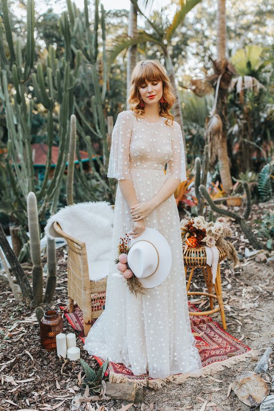 This is a bohemian classic and creates some serious chill vibes for your evening. Mix and matching the shades creates a layered, less uniform effect. We also can’t stop staring at the gorgeousness that is the accompanying floristry from Bower Botanicals in this installation. Amazing!