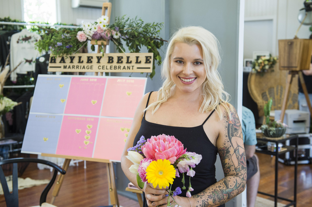 Hayley Belle is not your average marriage celebrant. At 30 years old, this rad mama has a full sleeve tattoo and a wild sense of humour! Hayley brings her signature spark and personal touch to every wedding, so whether you’re planning a backyard affair with your pets as your bridal party, in a sailor outfit on a yacht, or on a stage at a heavy metal gig…you name it, she’s game!